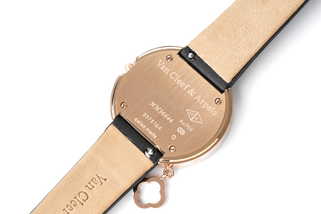 • The signature Van Cleef & Arpels vine motif graces the side in delicate script, a mark of heritage and prestige.