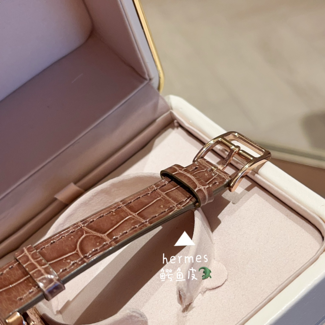 • Crafted with artisan Swift calfskin in a soft pink hue, the strap features a warm奶茶色 back for a subtle contrast.