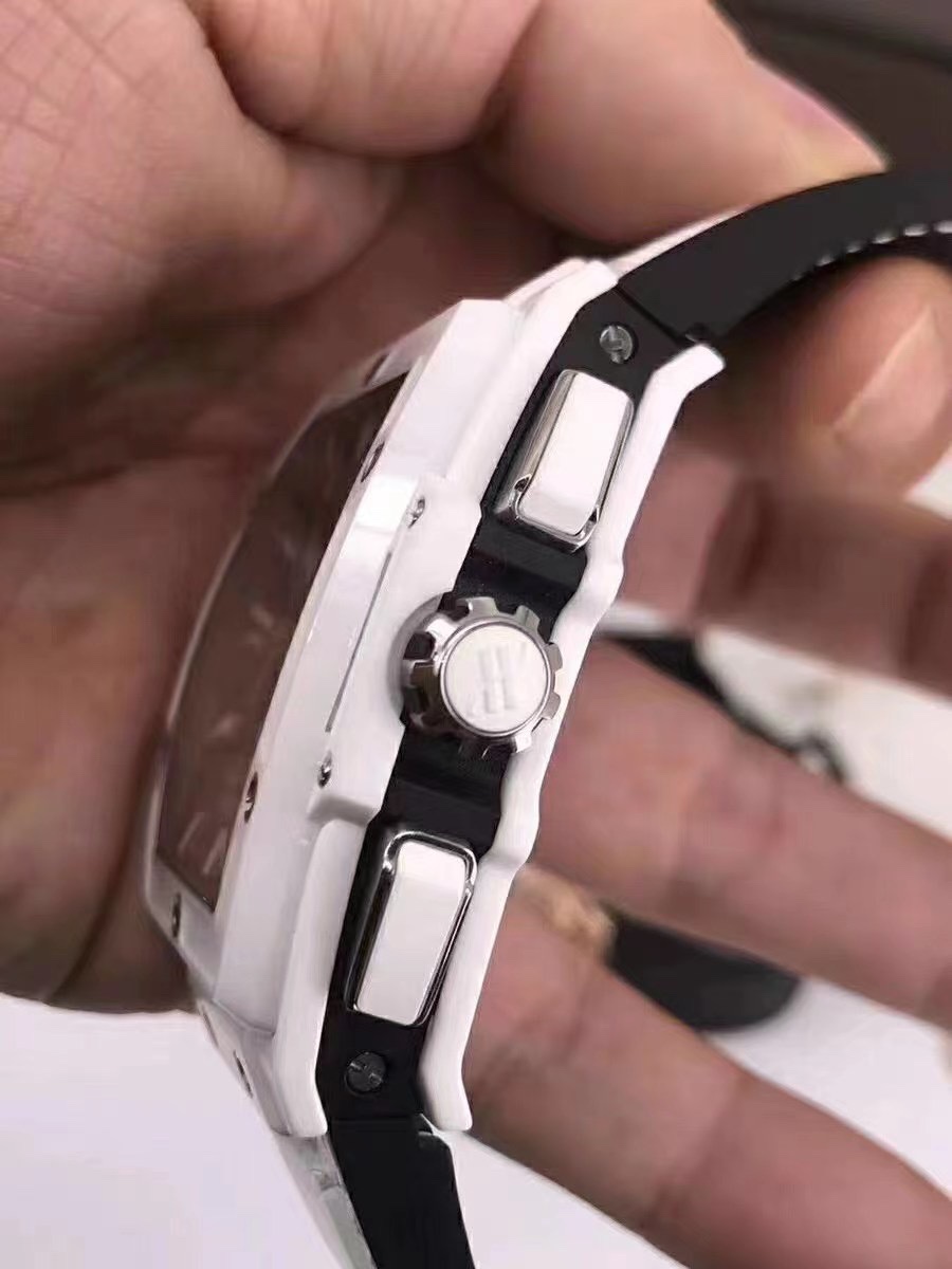 • Its signature barrel-shaped case, crafted in white ceramic and titanium, showcases the brand’s “Art of Fusion.”